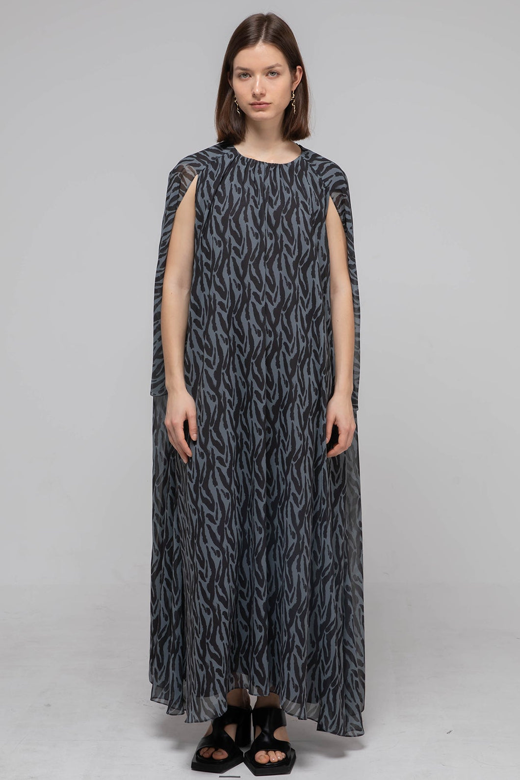 Gaun maxi bercorak hopi tanpa lengan dengan shirring