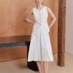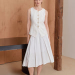 Rok pleats tidak seimbang putih