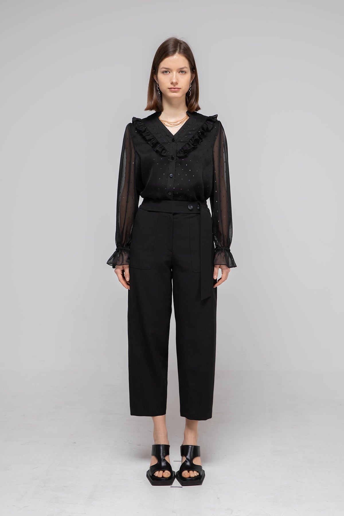 High waist banding baggy pants black