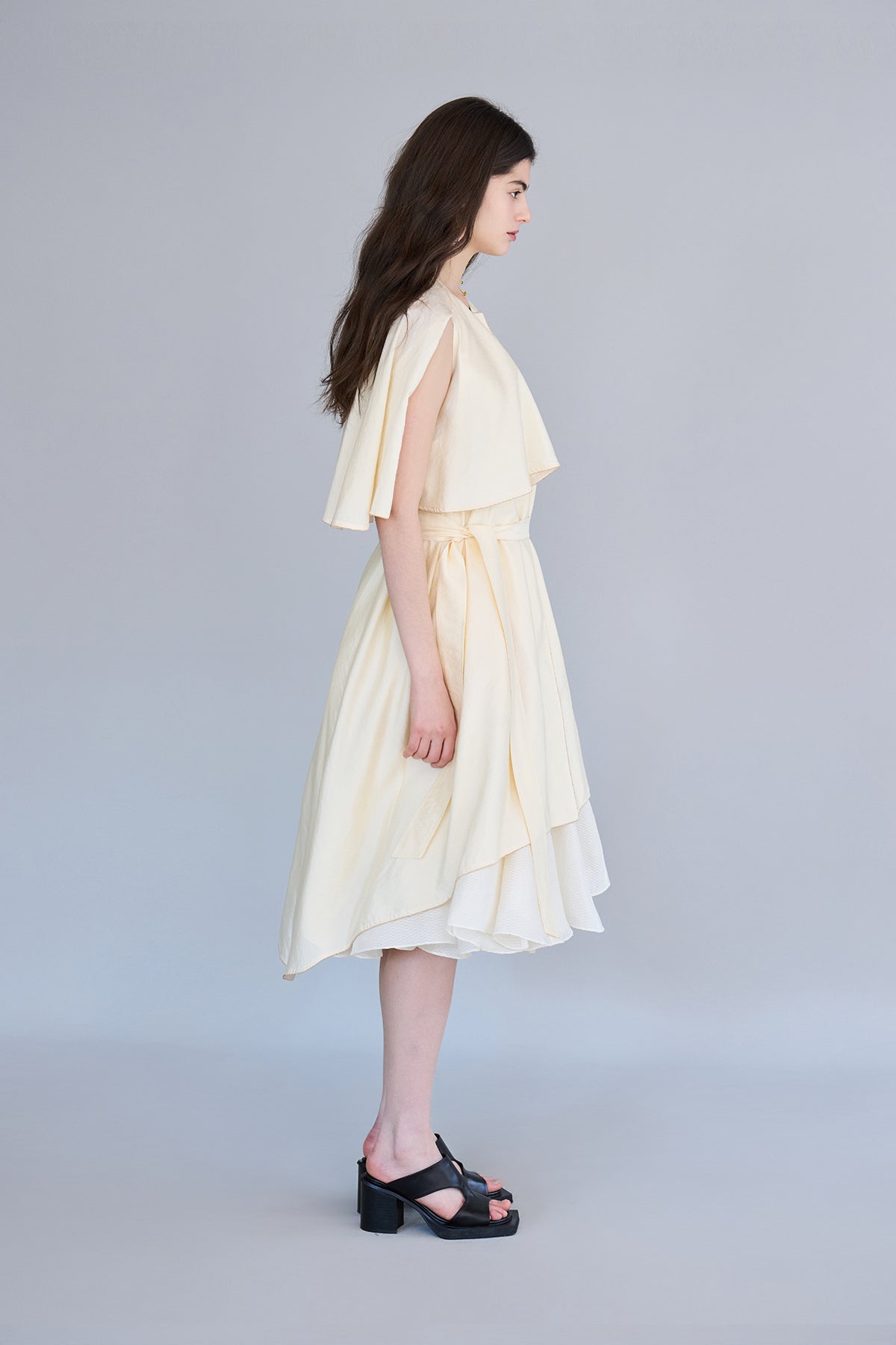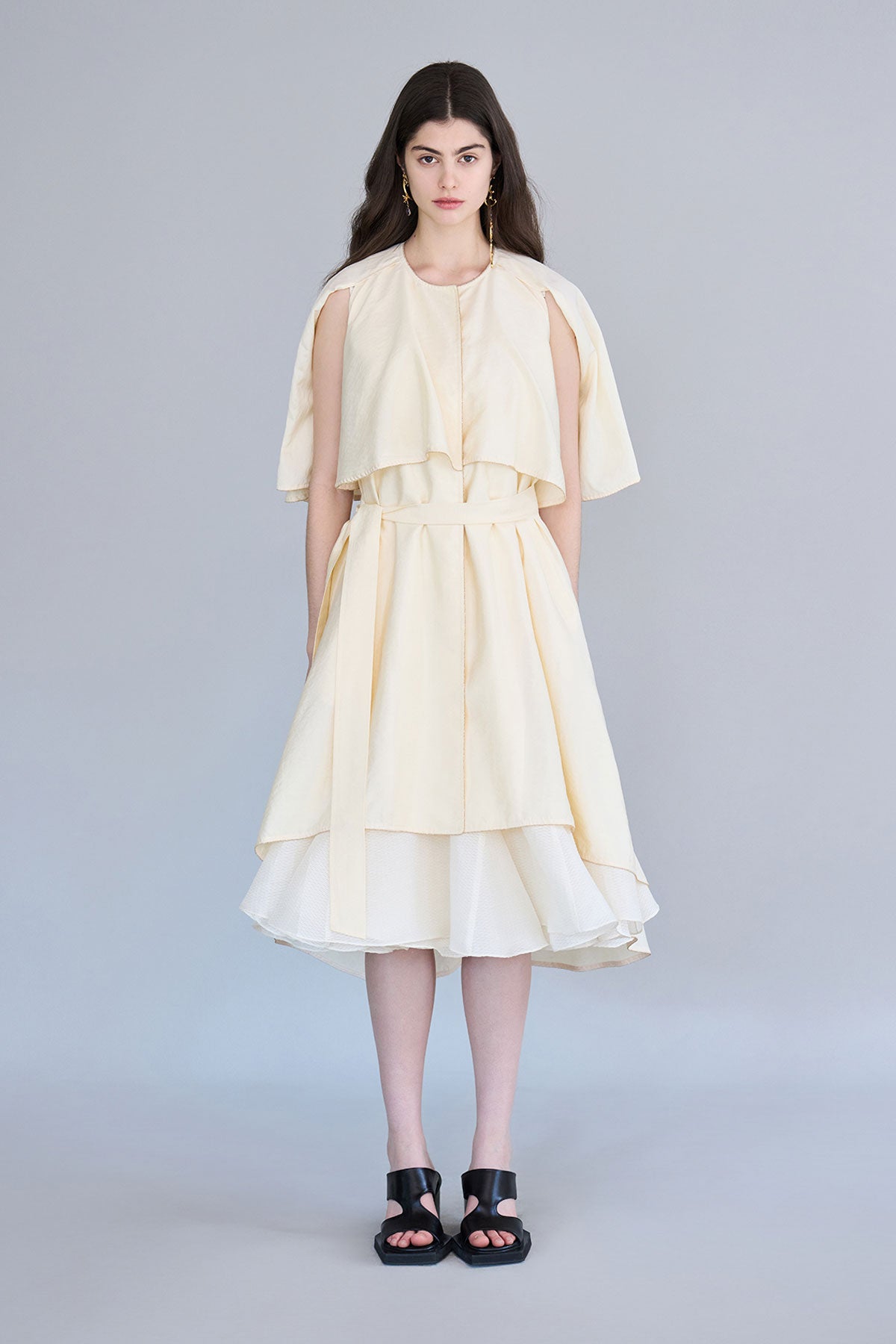 Casaco trench assimétrico de seda com manga capa recortada baunilha