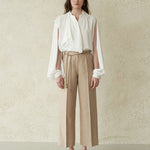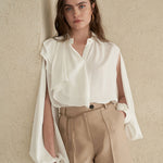 Блузка с асимметричным расклешённым воротником и разрезами на рукавах