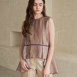 Блузка неравномерного цвета a topeСвободный силуэт А-образной формы скрывает контуры телаДизайн с складками по обеим сторонам и черной отделкой на линии талииЗадняя часть немного закрывает бедра, поэтому вы можете носить её с комфортом.