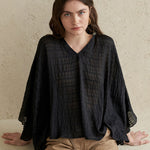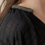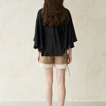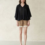 Блузка с панельными рукавами-пелеринами, украшенная бусинами