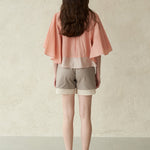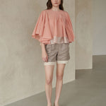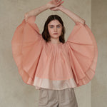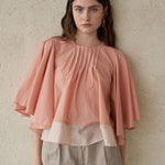легкая блузка цвета африканского абрикоса с крылышкамиДетали с мелкими складкамиЯркое движение при каждом вашем движении благодаря широким расклешённым рукавам.Дышащий материал позволяет оставаться в прохладе даже в разгар лета