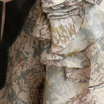 Шелковая блузка с разрезом на шее и многослойными рукавами