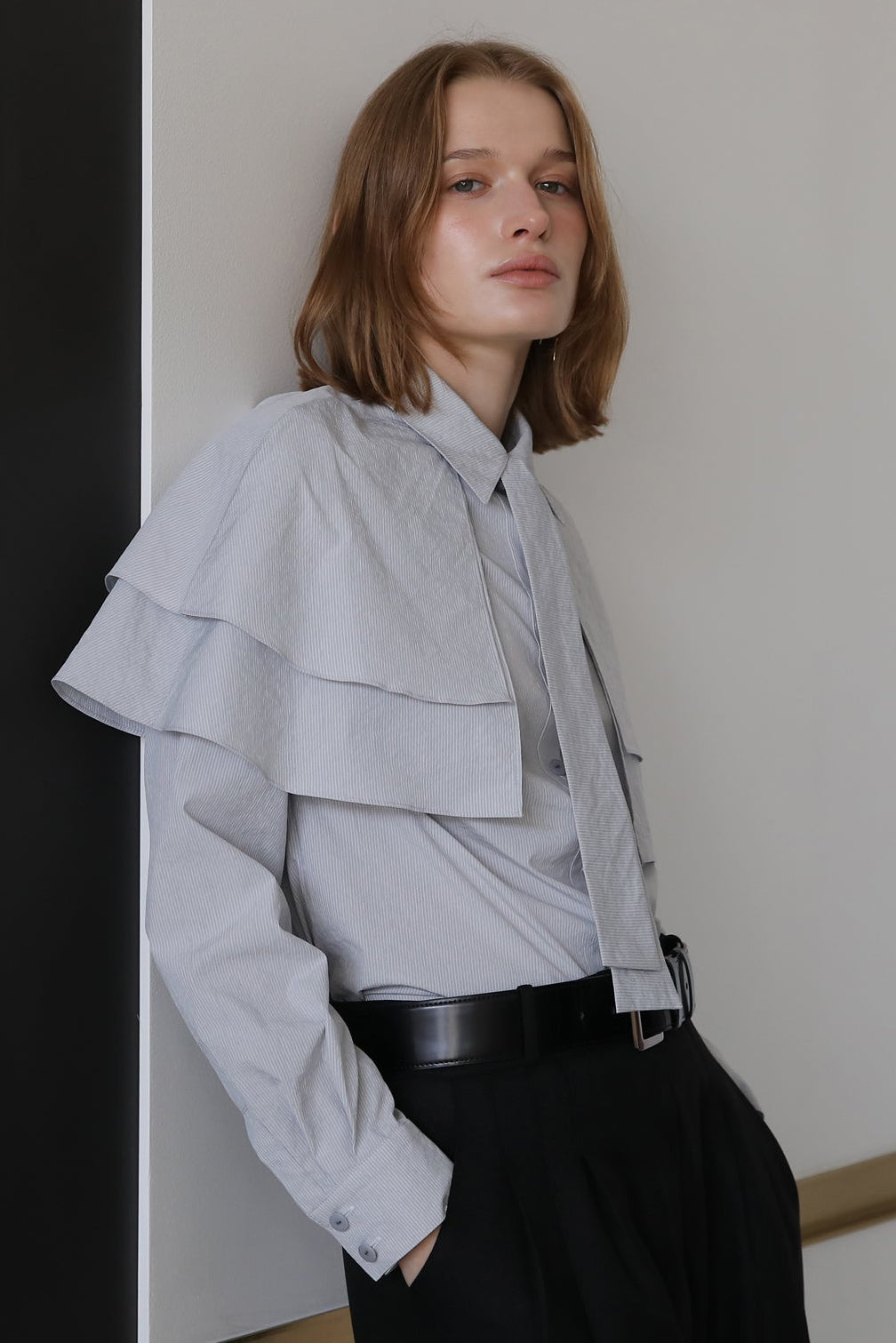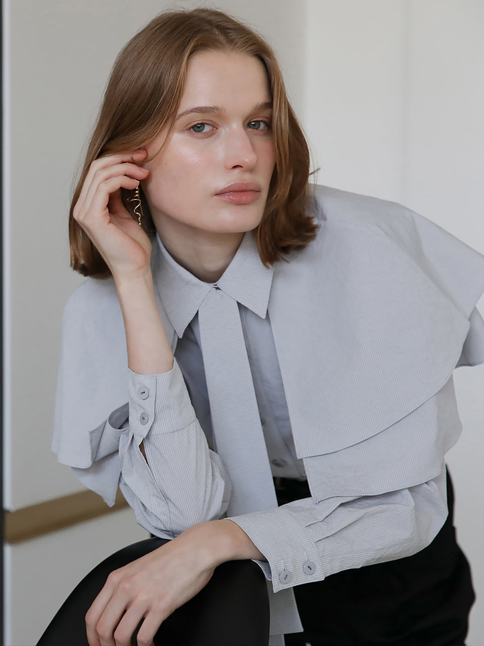 Рубашка-пончо с галстуком в тон, небесно-голубая