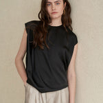 Черная блузка без рукавов с защипами