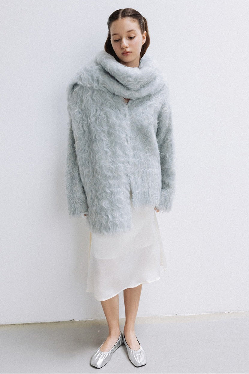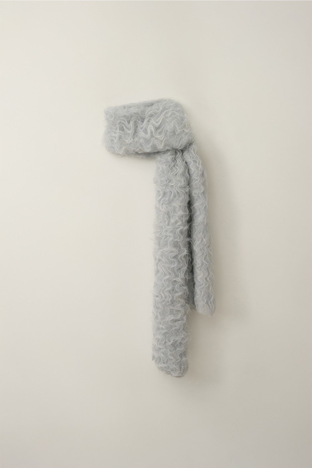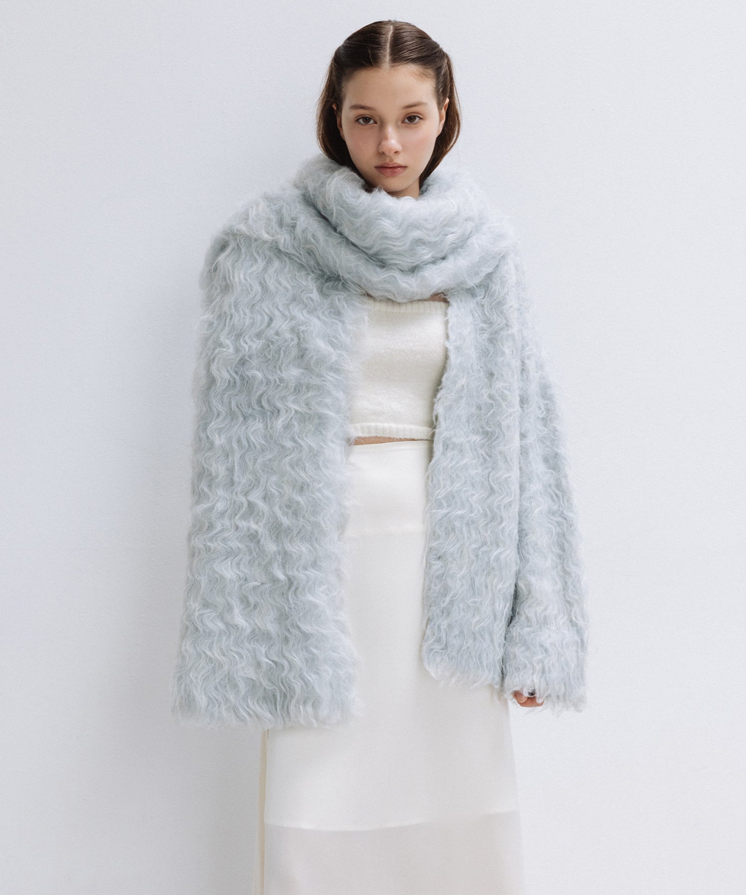 Волнистый пушистый длинный шерстяной шарф светло-голубой