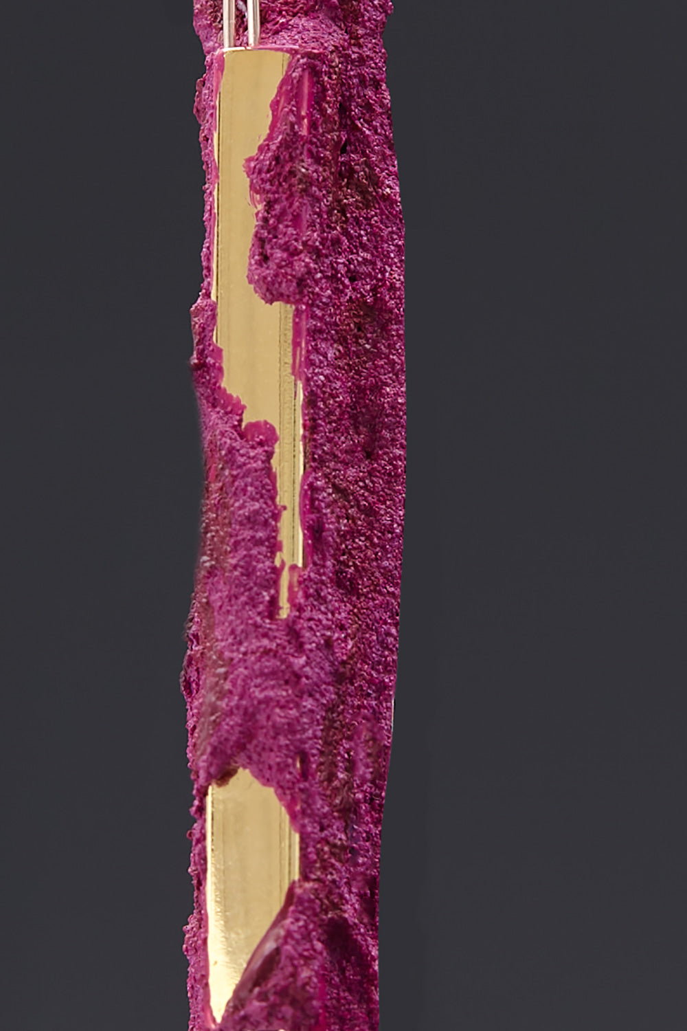 有些时刻,时间和反复触碰留下的痕迹比完美抛光的表面更清晰地揭示了方向。Raw Breath Lamed 采用垂直形态,保持了刻意未加修饰的材料密度。色彩和质感的层次不仅仅是单一色调,而是时间的剖面,侵蚀与暴露。表面上的小元素不是装饰,而是接触的痕迹。细长的结构暗示着运动而非静止,在原始而克制的呼吸中保持着宁静的平衡。它留下的不是情感,而是寂静——不是装饰,而是张力。