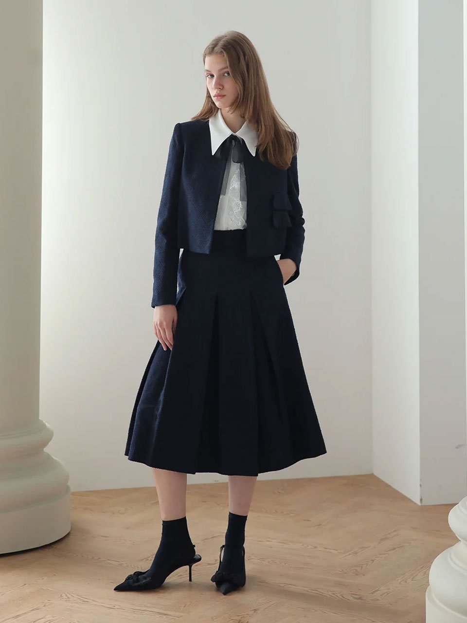 黑色方领蝴蝶结点缀宾客风连衣裙