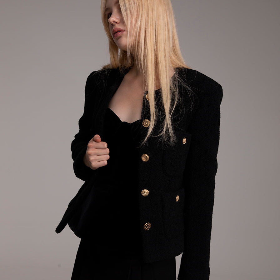藍銀色亮片花呢布插肩袖外套